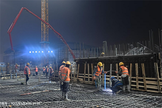 精心组织,施工模拟促进效益提升。此次圆满完成浇筑的地下室结构,浇筑面积达18000平方米,施工过程中,4台天泵火力全开,同时作业,完成了7种不同标号共7097立方米混凝土的浇筑任务,场面壮观有序。在顶板浇筑工作启动前,项目部组织技术人员对浇筑方案进行施工模拟,深入研究与论证,全方位考量施工过程细节。按照既定施工方案,精心开展安全、技术以及质量交底工作,合理规划各班组的施工工序,确保每一位施工人员都对工作内容和要求了然于心。