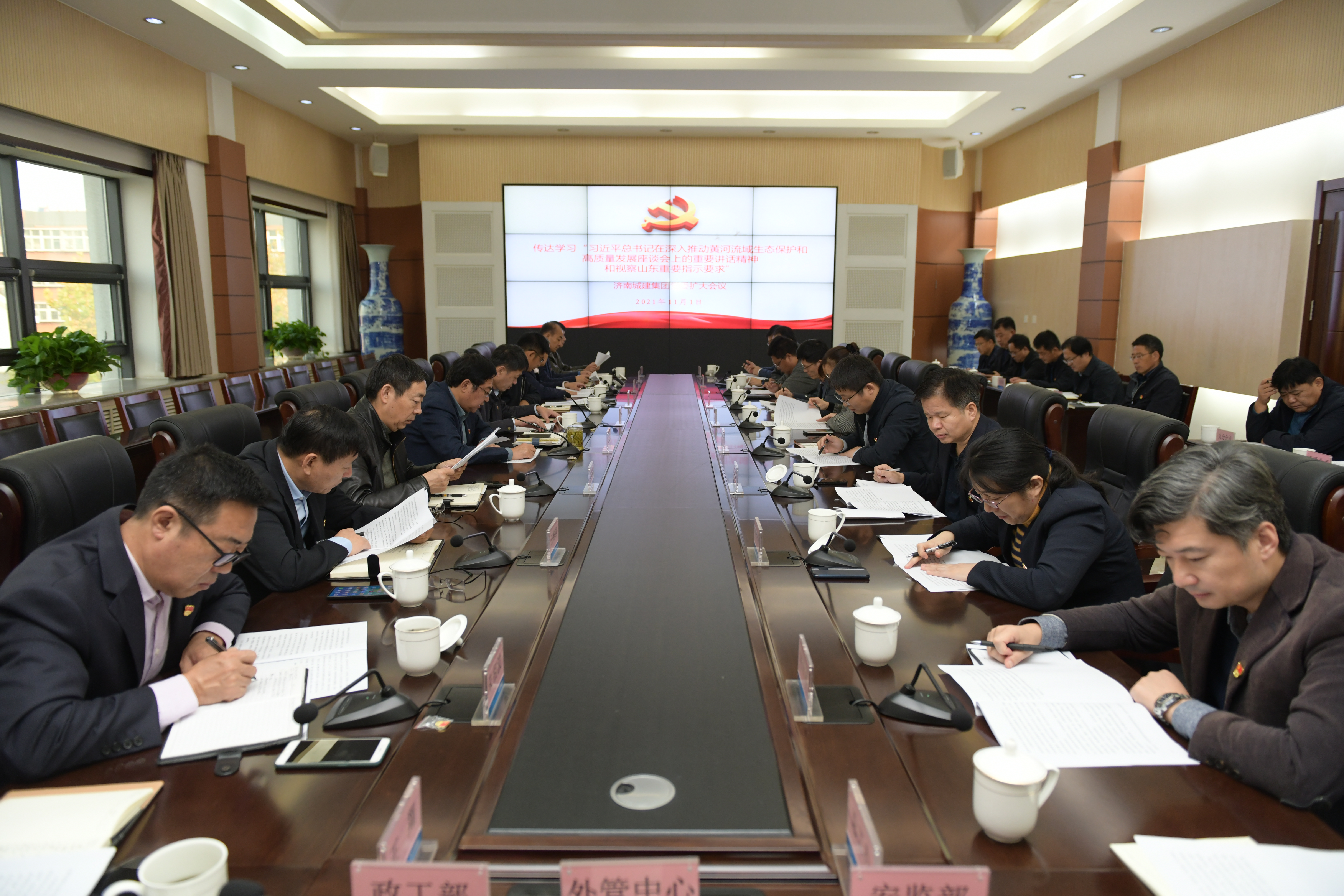 11月1日上午,集团召开济南城建集团党委扩大会议,传达学习习近平总书记在深入推动黄河流域生态保护和高质量发展座谈会上的重要讲话精神和视察山东重要指示要求。集团党委书记、董事长、总经理牟晓岩等领导班子成员,各党总支(支部)书记、各单位及职能部室负责人参加会议。