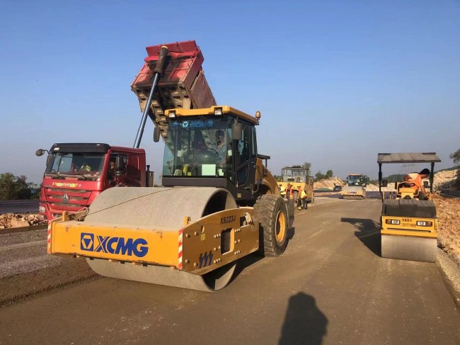 本次摊铺为左右两幅车道同时进行,设计是18cm厚水泥稳定碎石,混合料采用集中厂拌法,两台摊铺机成梯队作业,确保了水泥稳定碎石底基层的顺利摊铺。项目部在施工前召集技术人员认真编写施工方案,并层层交底至每位施工人员,做到以方案指导生产,以生产促进方案。提前部署,周密安排,合理组织人员、安排施工机械,保障了全线1180米的水泥稳定碎石底基层摊铺顺利完成。