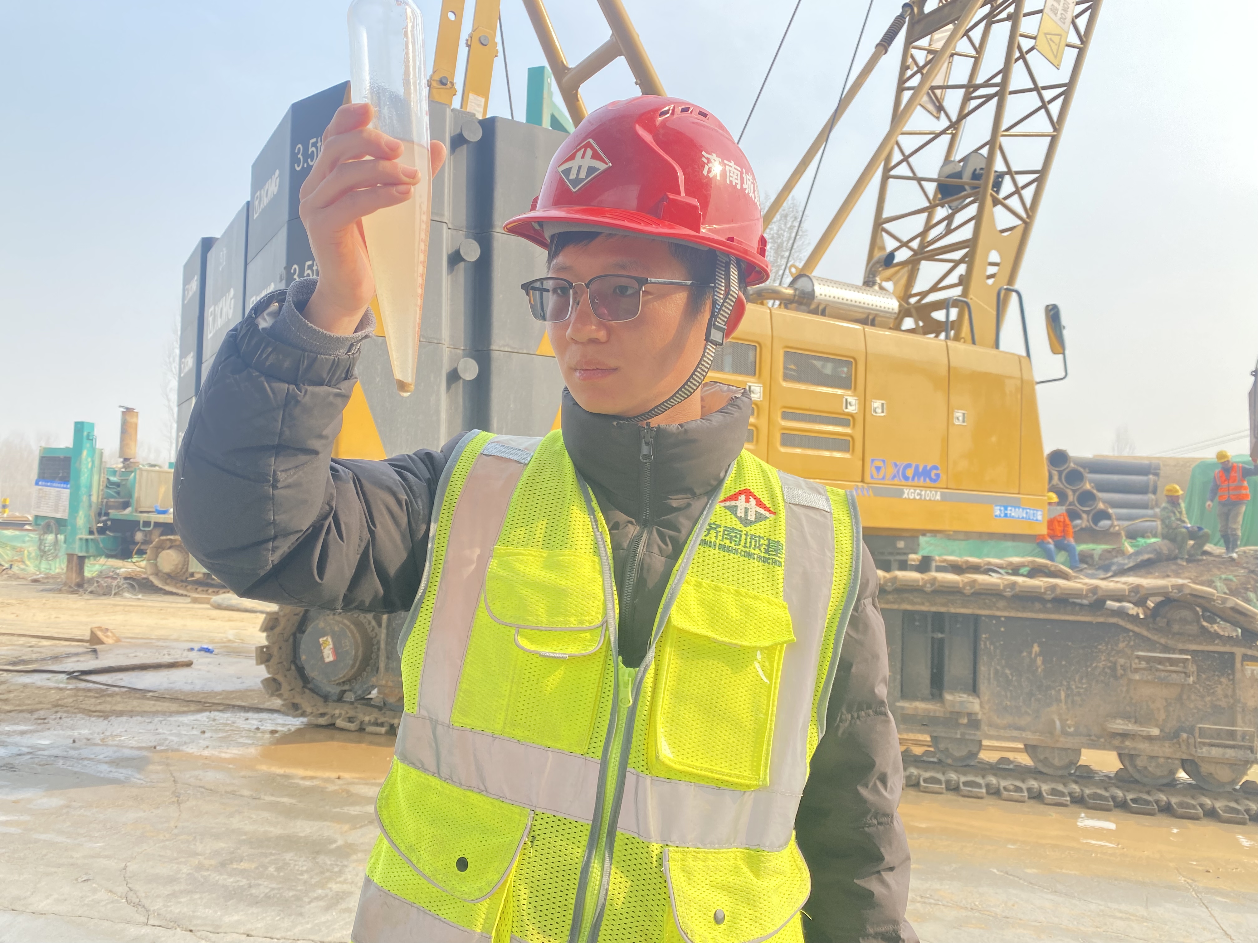 2021年8月,他参与的水阳江大桥国优工程复检工作圆满完成。国优评审完成后,他又赶赴济南黄河大桥项目,这是新的开始,新的挑战。该工程施工标准要求高、施工工艺先进,他加紧学习。由于黄河大桥主墩桩基为桩径2.2m、桩长108m的超大桩,从桩基钻进、钢筋笼安装到混凝土灌注,每个工序持续时间都很长,全体项目人员都集中精力,盯紧每一个工序的施工,对于质检员来讲保证前、后场钢筋笼质量验收、合理调配桩基钻进过程中的泥浆比重、实时反馈灌注混凝土的和易性更为重要。